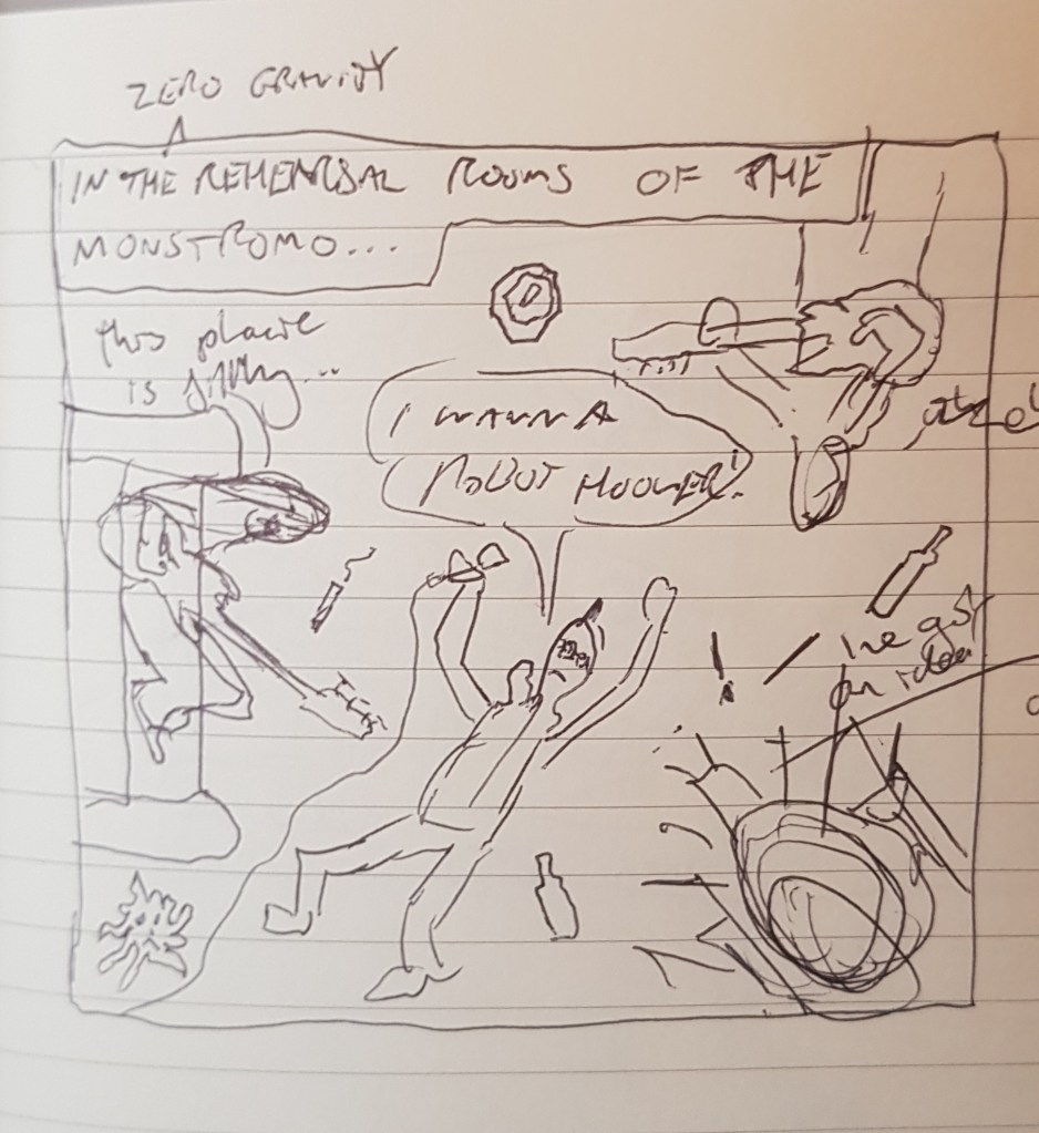 Bag Ratty Bro met aboard the liberated Nargonian Cruiser ‘Monstromo’ during an unlicensed zero-gravity harmonic duel.